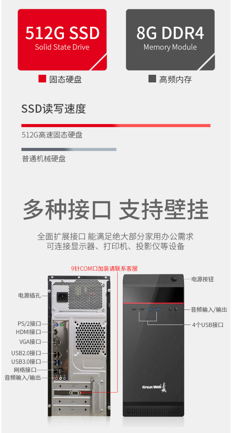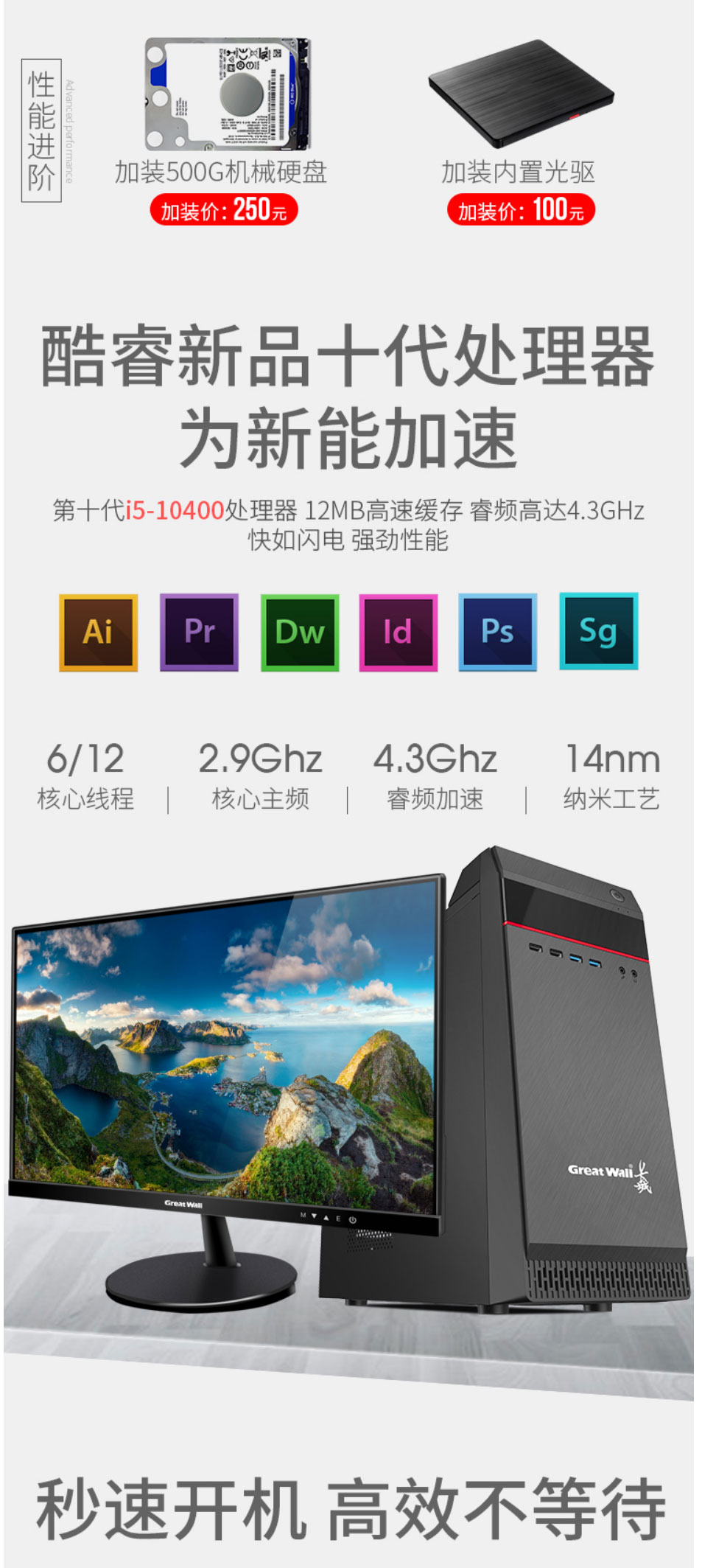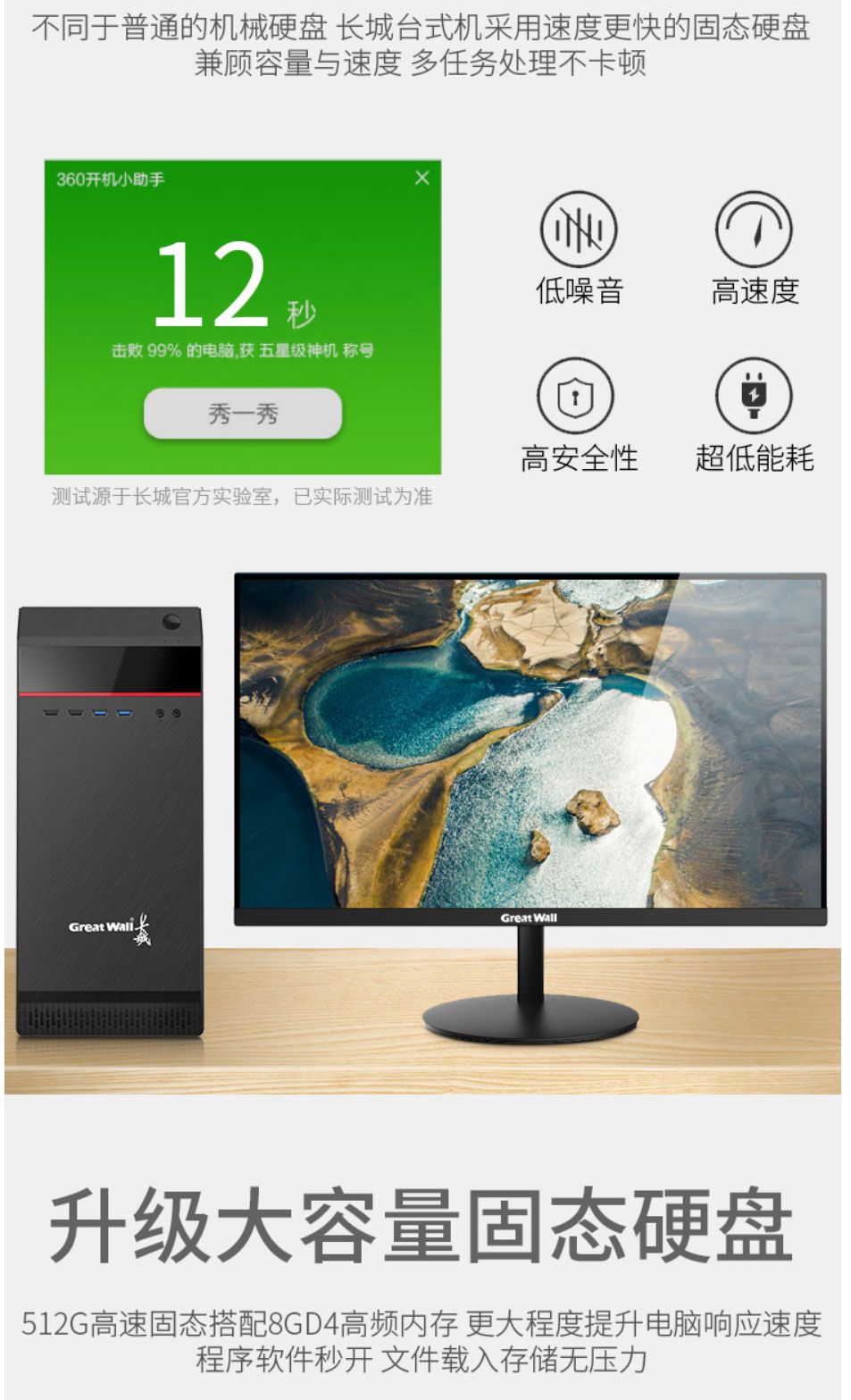 长城 (Great Wall) 十代G5905(8G 256G 主机+21.5英寸) 标配